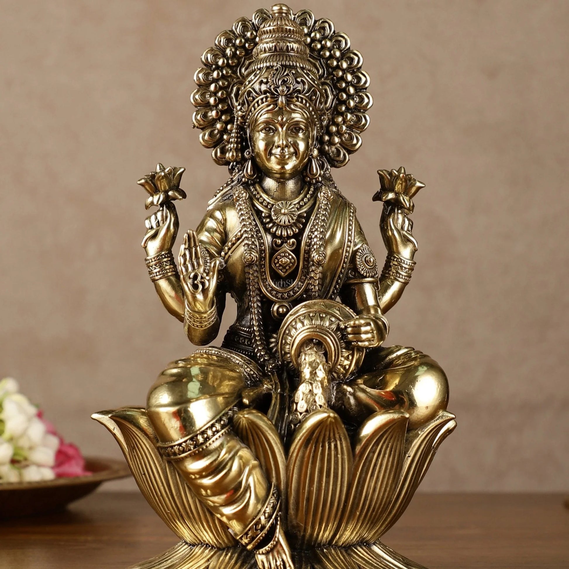 Brass Goddess Dhan Lakshmi Idol on Lotus